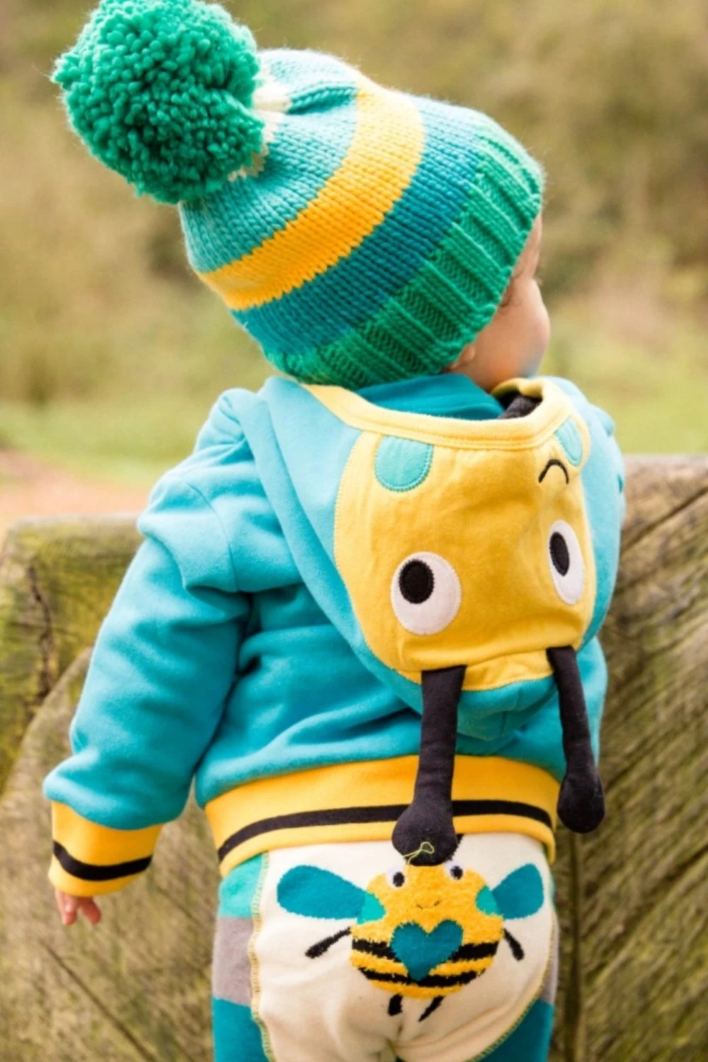 Cute hoodie for toddlers from our Buzzy Bee collection. This fresh, fun and funky hoodie is perfect for all little bees. Fun Buzzy Bee character sits on the hood with 3D antenna for buzzing around.