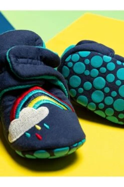 Cute baby’s booties from our Highland Cow collection. Made for moving and grooving around the house, it’s our handsome Highland Cow. Who can resist a little tickle behind those 3d ears?All our booties come with an elasticated cuff and soft rounded edge velcro for easy dressing. They’re fleecy inside for comfort and warmth, with a printed all over pattern on the sole.