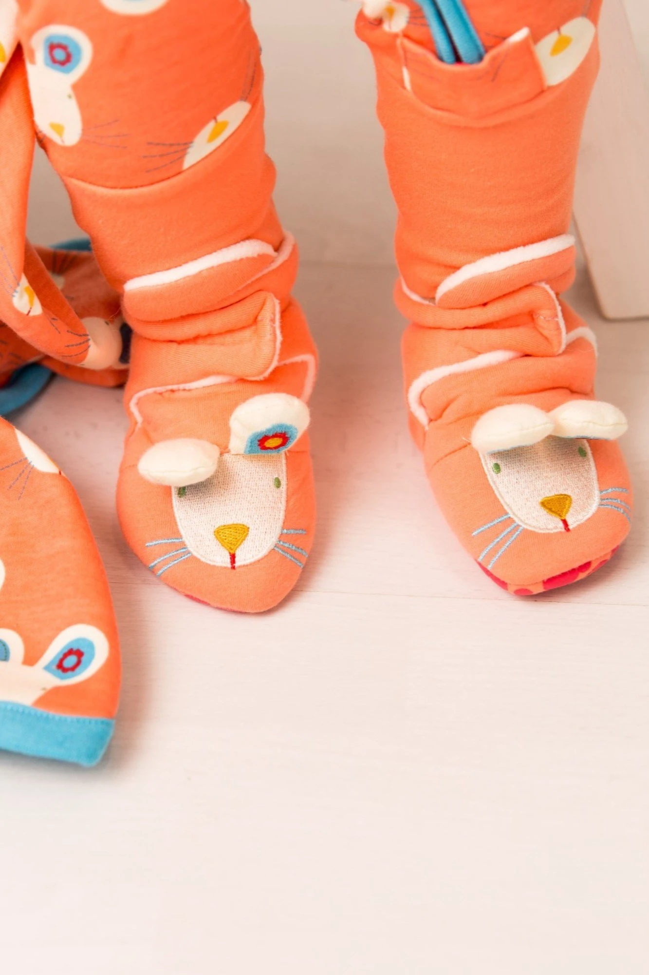 Lovable baby’s booties from our Maura the Mouse collection. Adorable Maura the Mouse booties are here! Warm booties to be worn in and around the house, they’re the perfect addition to our Maura collection.