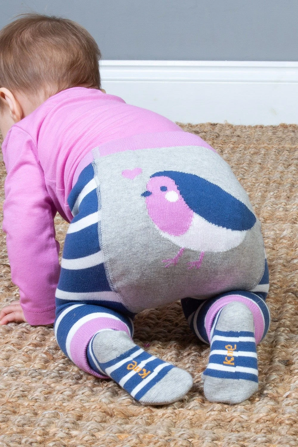 Meet these super-soft knitted leggings featuring a navy and cream stripe and a sweet bonnie robin design on the seat. For ease and comfort pull them on with a t-shirt, baby vest or dress. Kite’s knitted leggings are a great everyday option for little ones on the go.