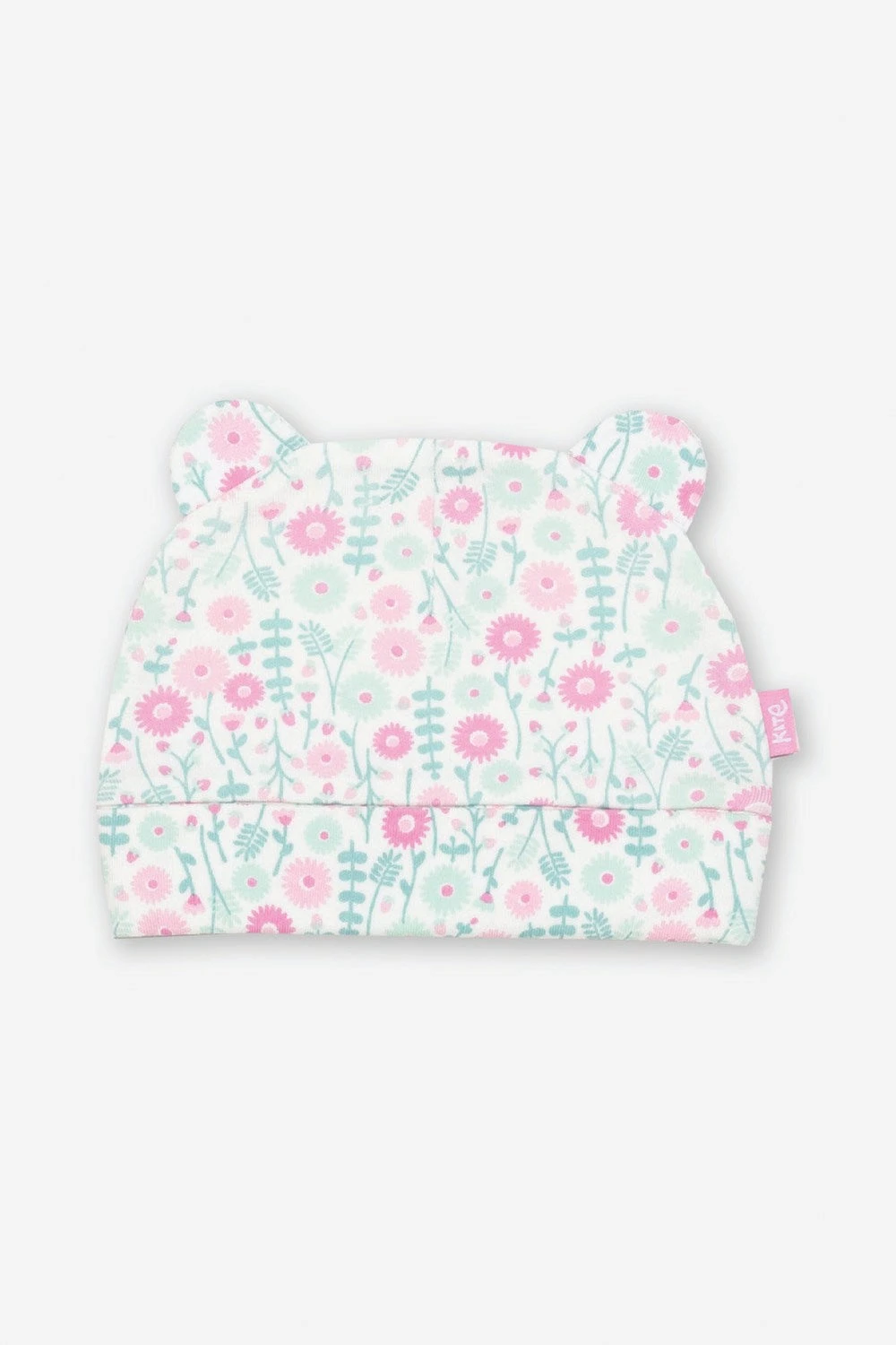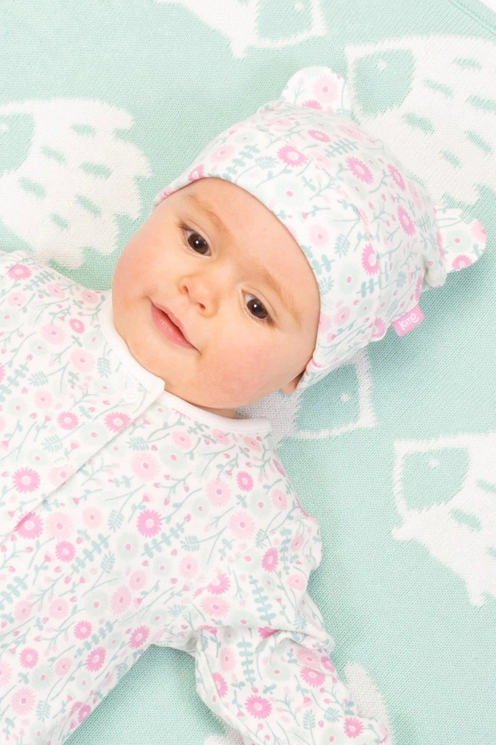 Kite’s pretty daisy ditsy print creates the perfect look for this organic cotton hat with a turn-up cuff and cute ears. Complete the look with matching baby bib, sleep bag and sleepsuit, for an adorable outfit this season.