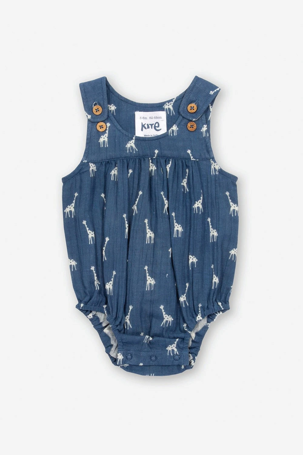 Being the world’s tallest mammal, giraffes are pretty magnificent, even their newborns are taller than most humans! This stylish bubble-shaped romper, featuring a cute giraffe all-over print, is crafted using a lightweight double-layer muslin to keep your little one cool in the summer sun. It’s comfy, breathable and looks great too.