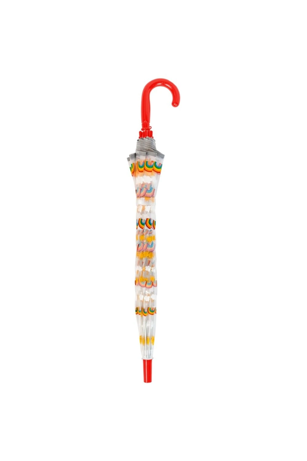 This dome umbrella features a rainbow and sunshine design, complete with contrast tips and handle. The reflective strip ensures safety in low visibility. Manual opening ensures easy use and compact storage. It boasts a canopy of 72cm and a closd length of 66cm. Perfect for children aged 3 and over looking for rainy day adventures.