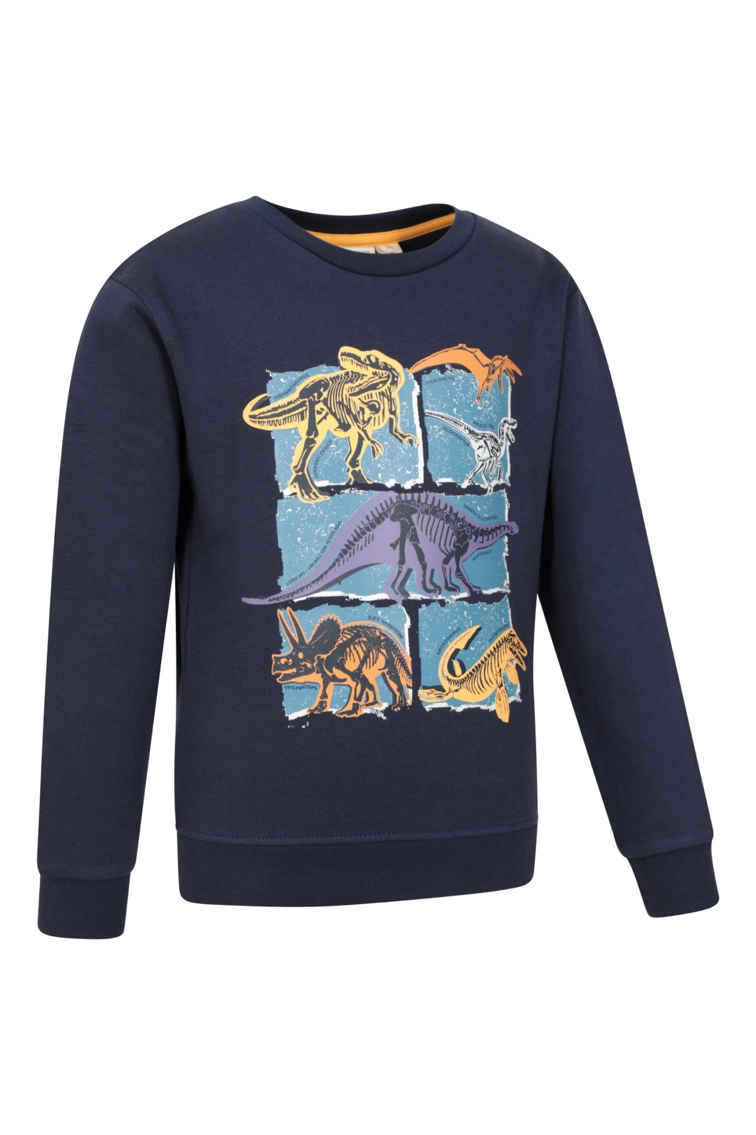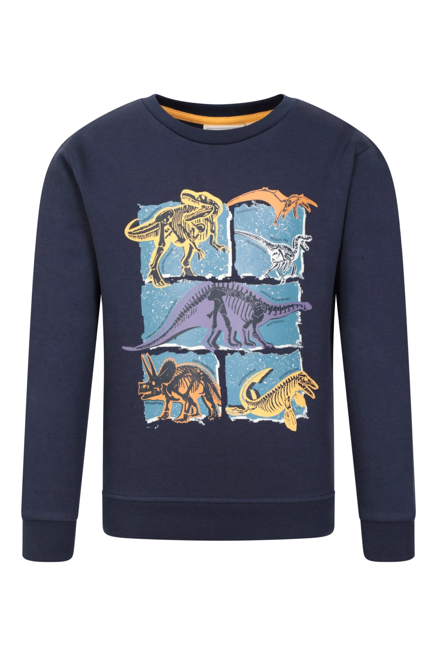Our Dino Kids Crew Neck Sweatshirt is made of cotton fabric with a brushed inner for increased comfort. It has elasticated cuffs and hem for a great fit, a stylish crew neckline and a fun printed design, making it ideal for everyday wear.