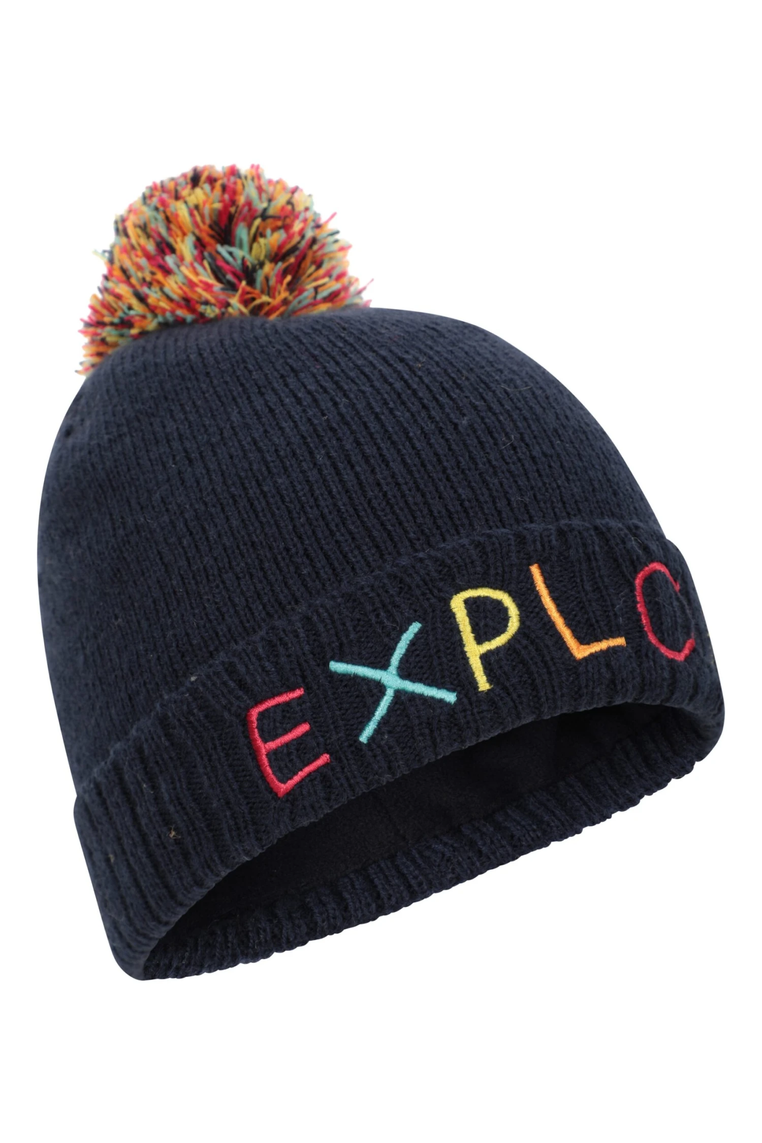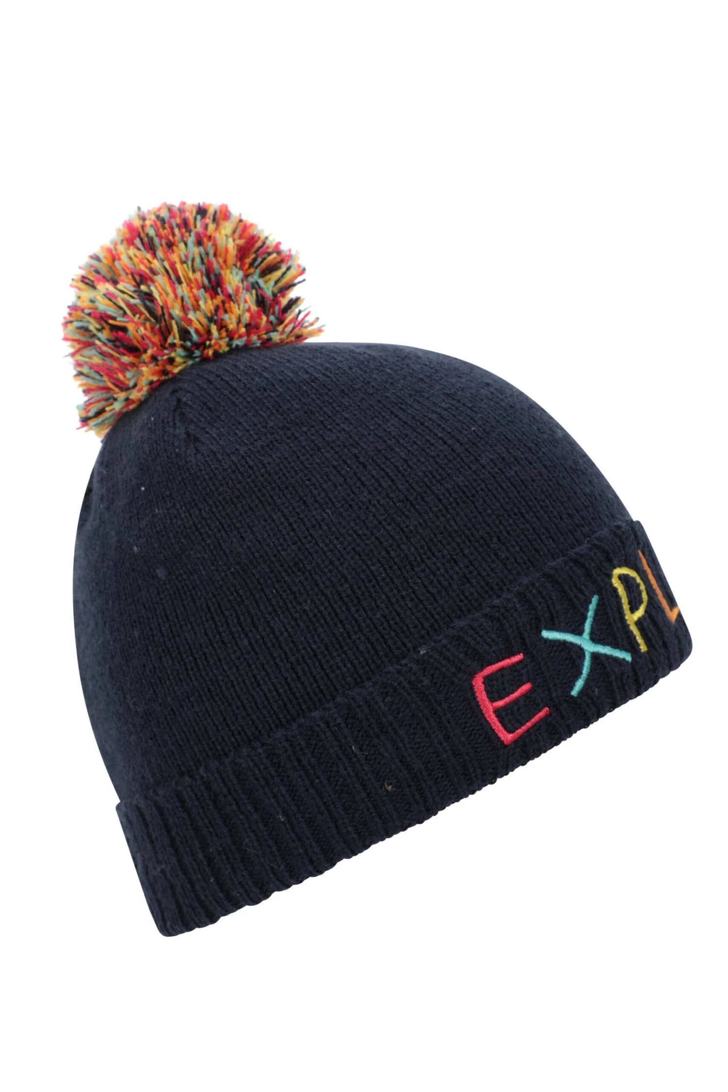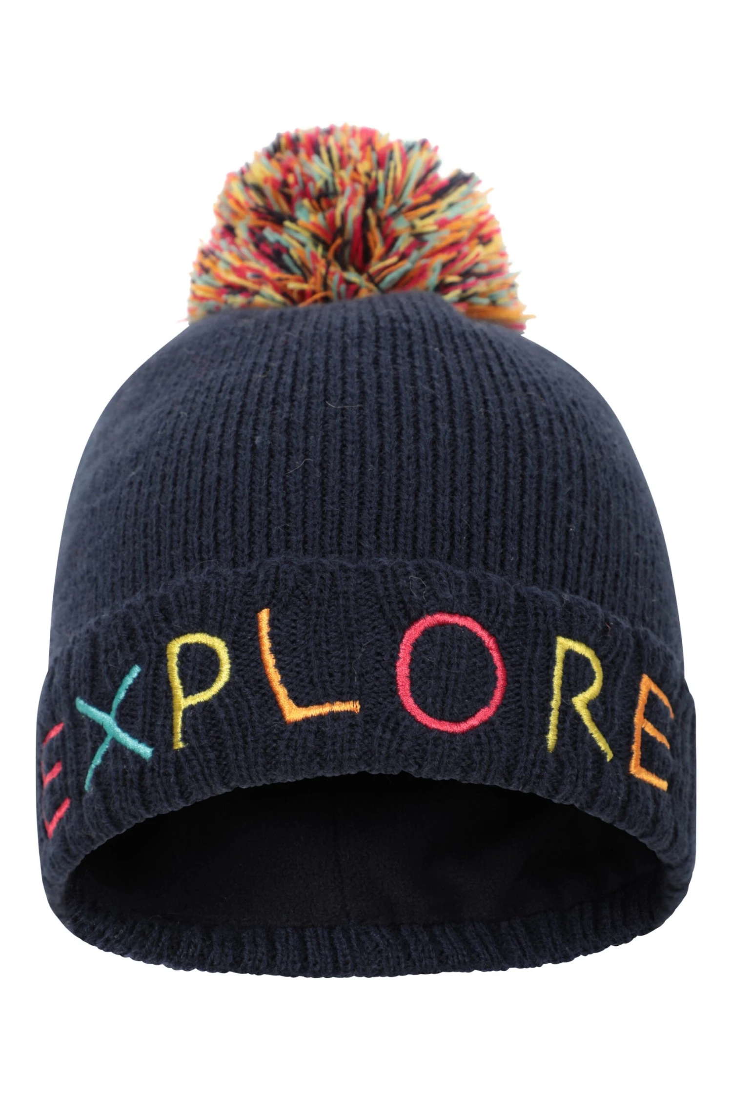 Inspired by the outdoors, our kids’ beanie is made with a soft knit outer with colourful embroidered detailing. Decorated with an eye-catching pom pom, its a warm and cosy winter accessory.