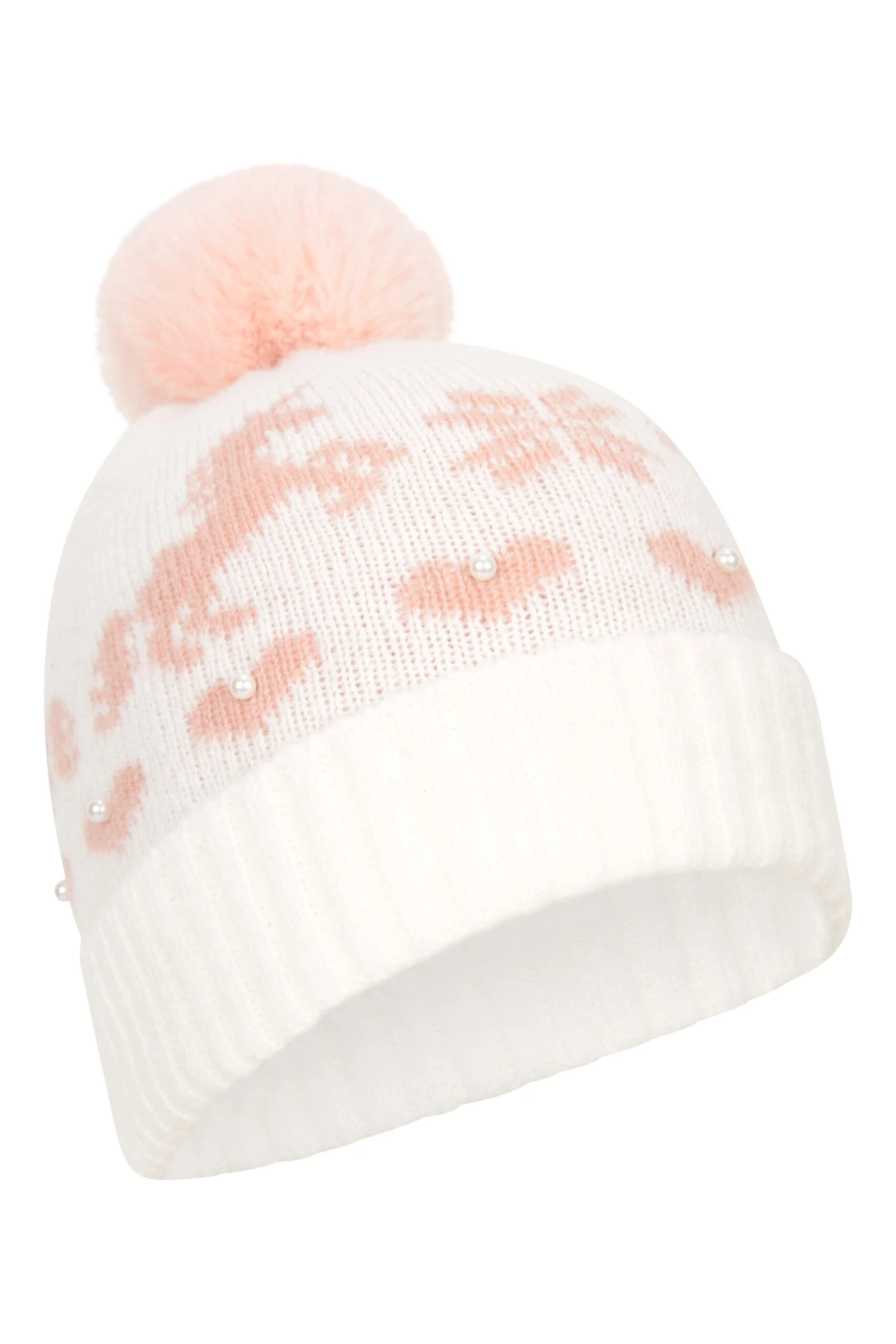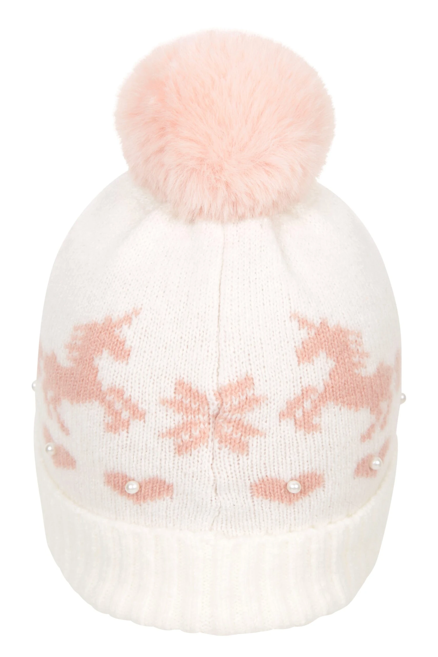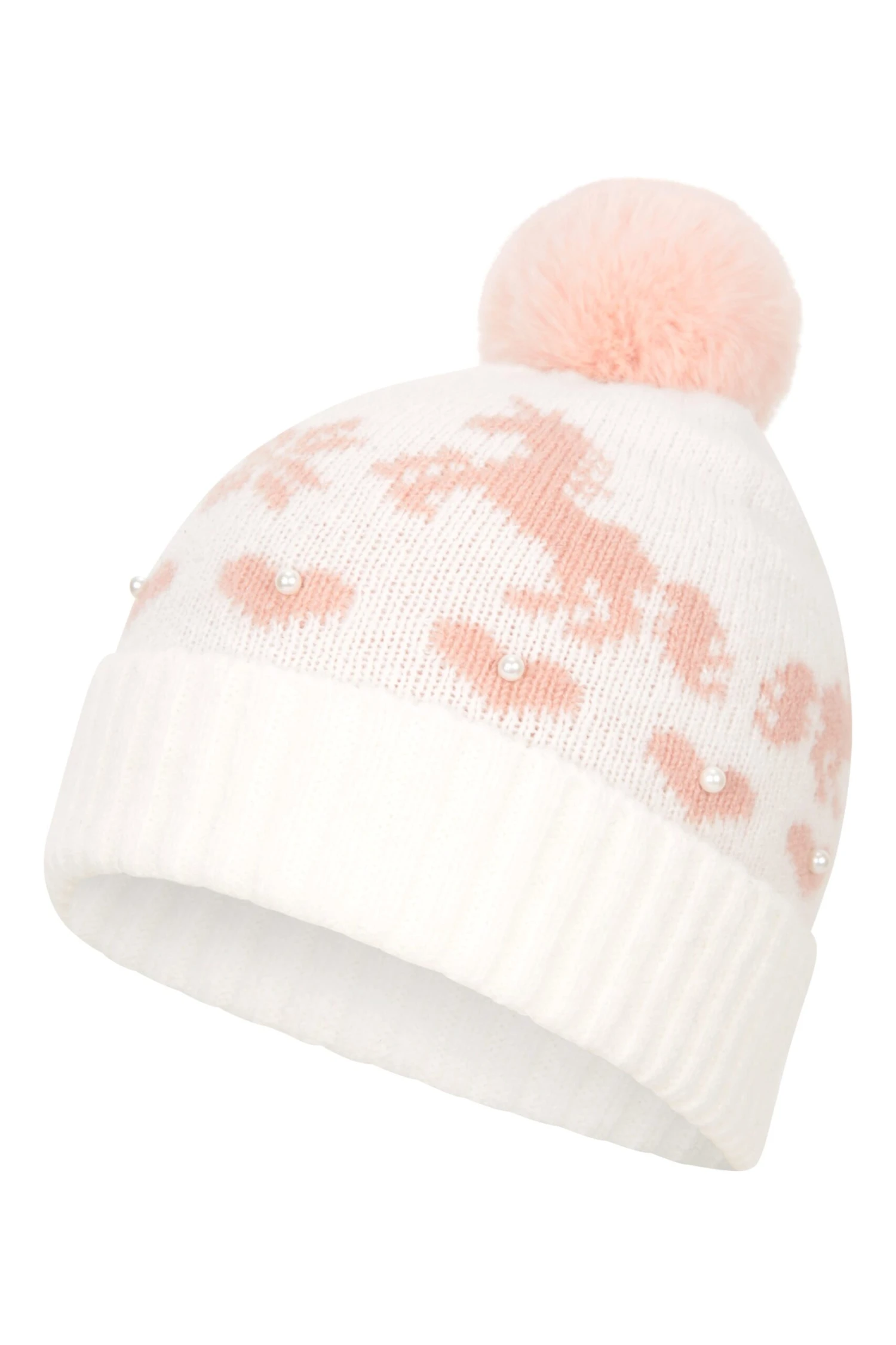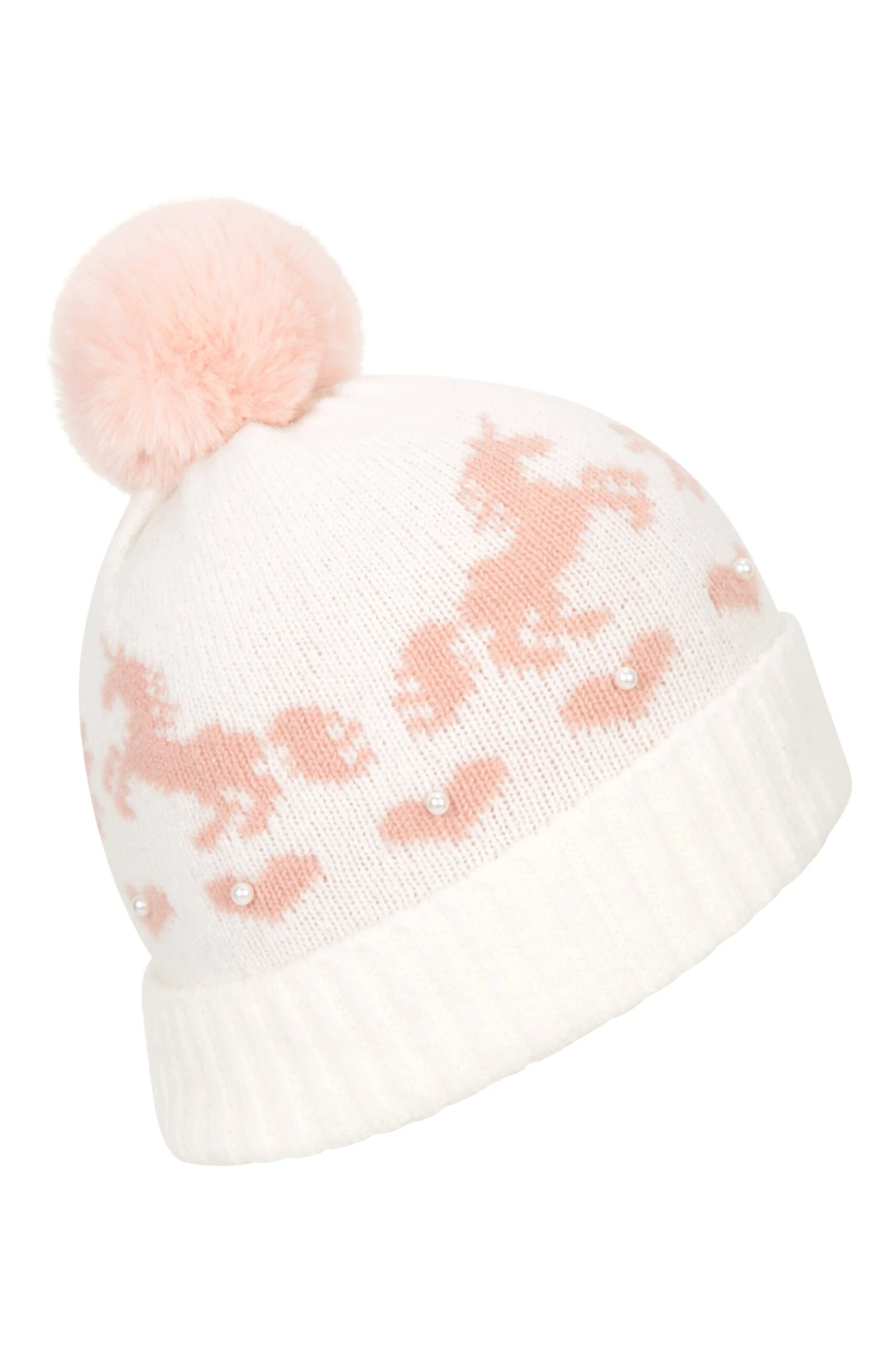 Our Faux Pearl Kids Pom Beanie is made of a soft knit fabric to keep your little one warm in colder weather conditions. It has a great unicorn design with a fun pom-pom feature and faux pearl detailing – perfect with any outfit.
