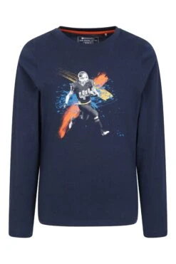 Our Football Player Kids Organic T-Shirt is made of 180gsm organic cotton fabric. By supporting organic cotton, you are helping to keep waterways and soil clear of harmful chemicals and supporting the welfare of the workers. This top has a quality graphic print and a stylish long sleeve design, making it great for any occasion.