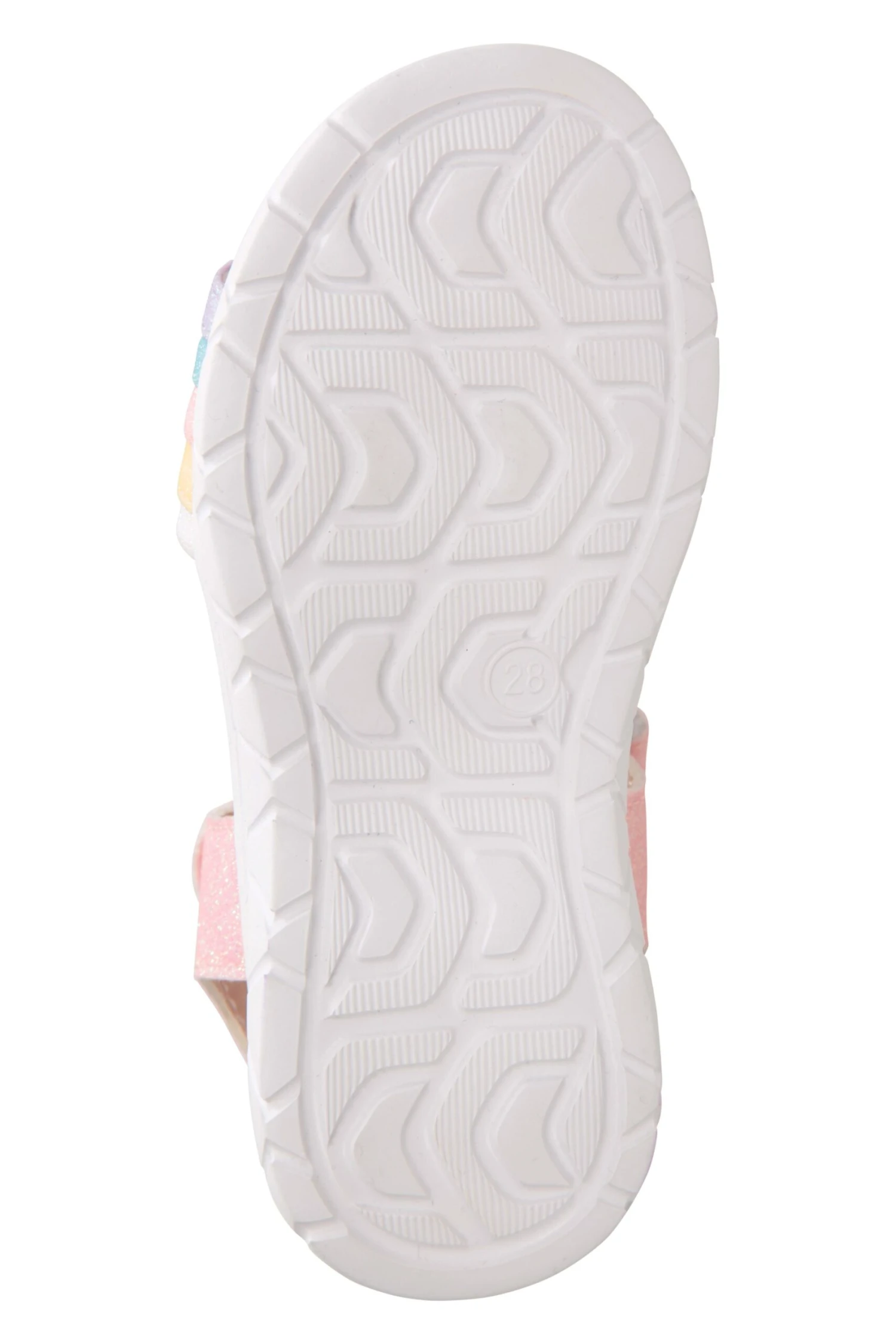 Count the colours on these glittery Girls Rainbow Sandals. Designed with a comfortable cushioned footbed and easy on/off strap, they’re ideal for summer adventures big and small.