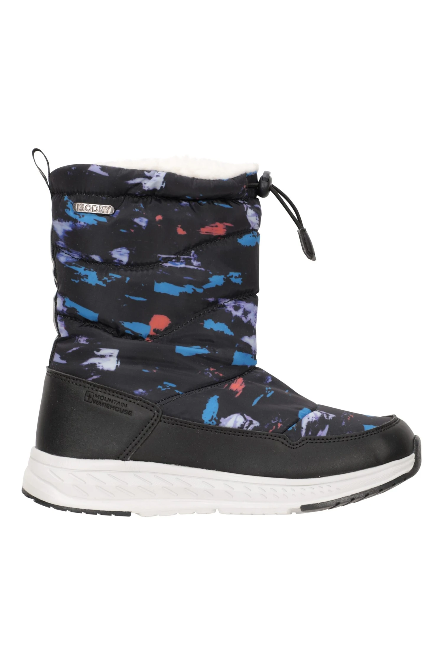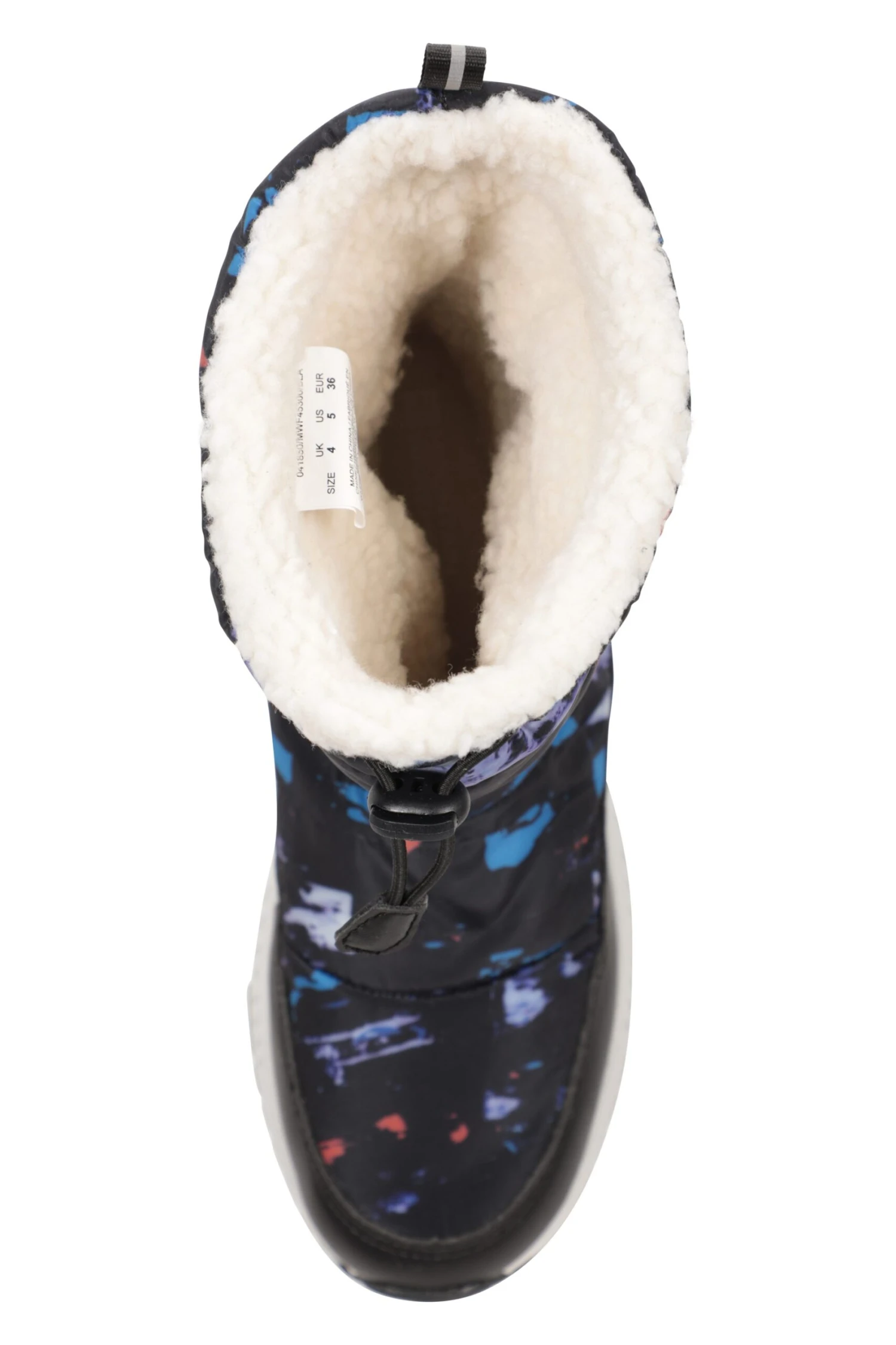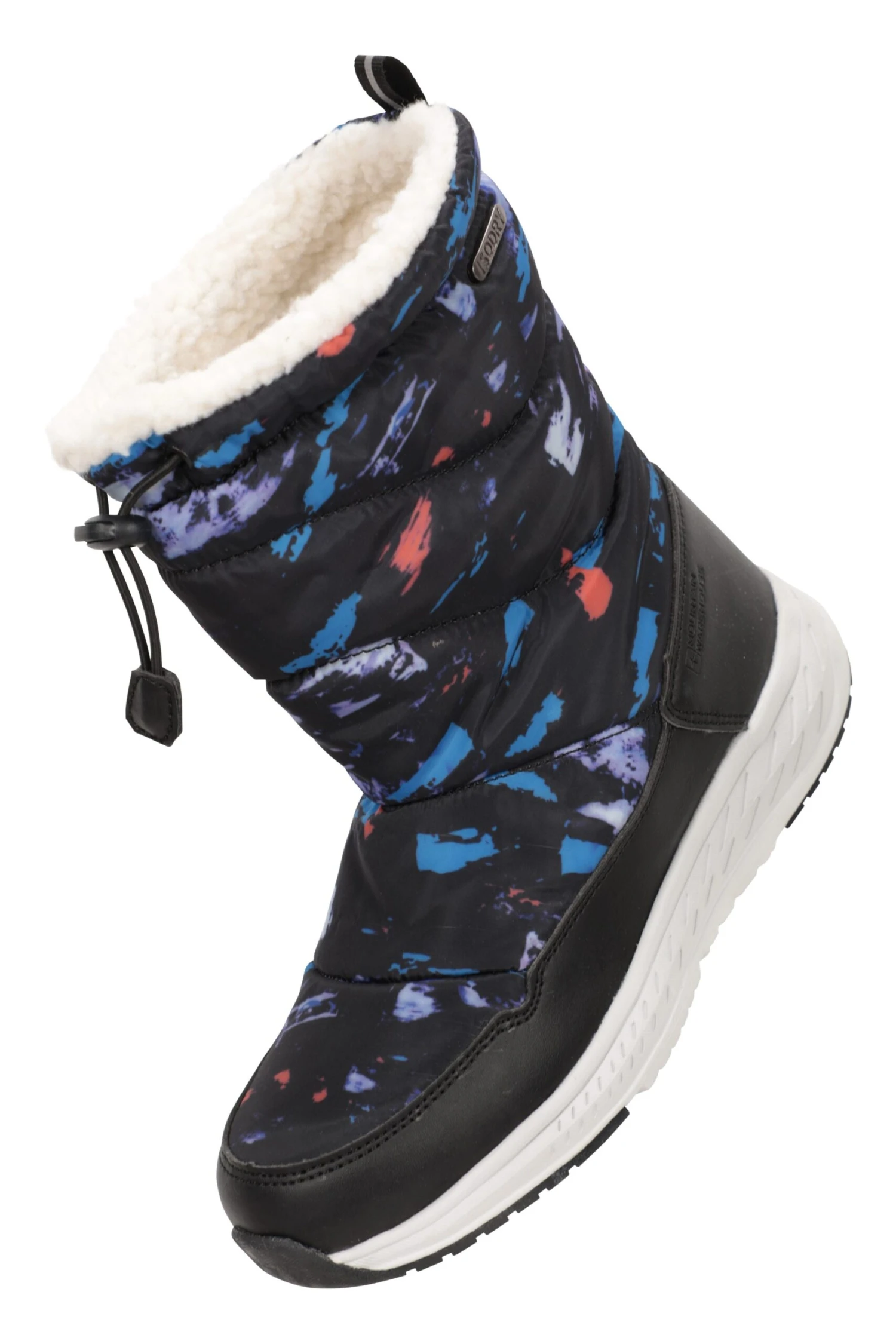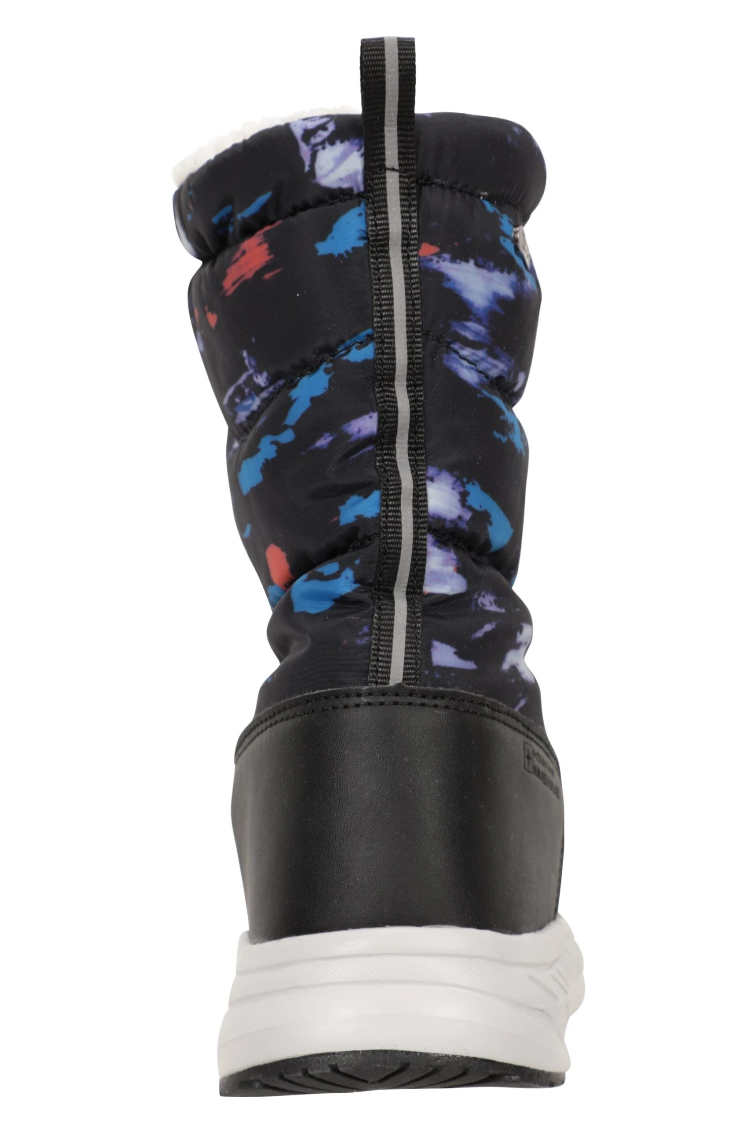 Keeping your little ones warm and dry this winter, our Glide Kids Printed Snow Boots are made with a waterproof upper and fleece lining. They are easily adjusted thanks to a drawstring fastening. They are constructed on a durable TPR outsole with EVA footbeds for moulded fit and comfort.