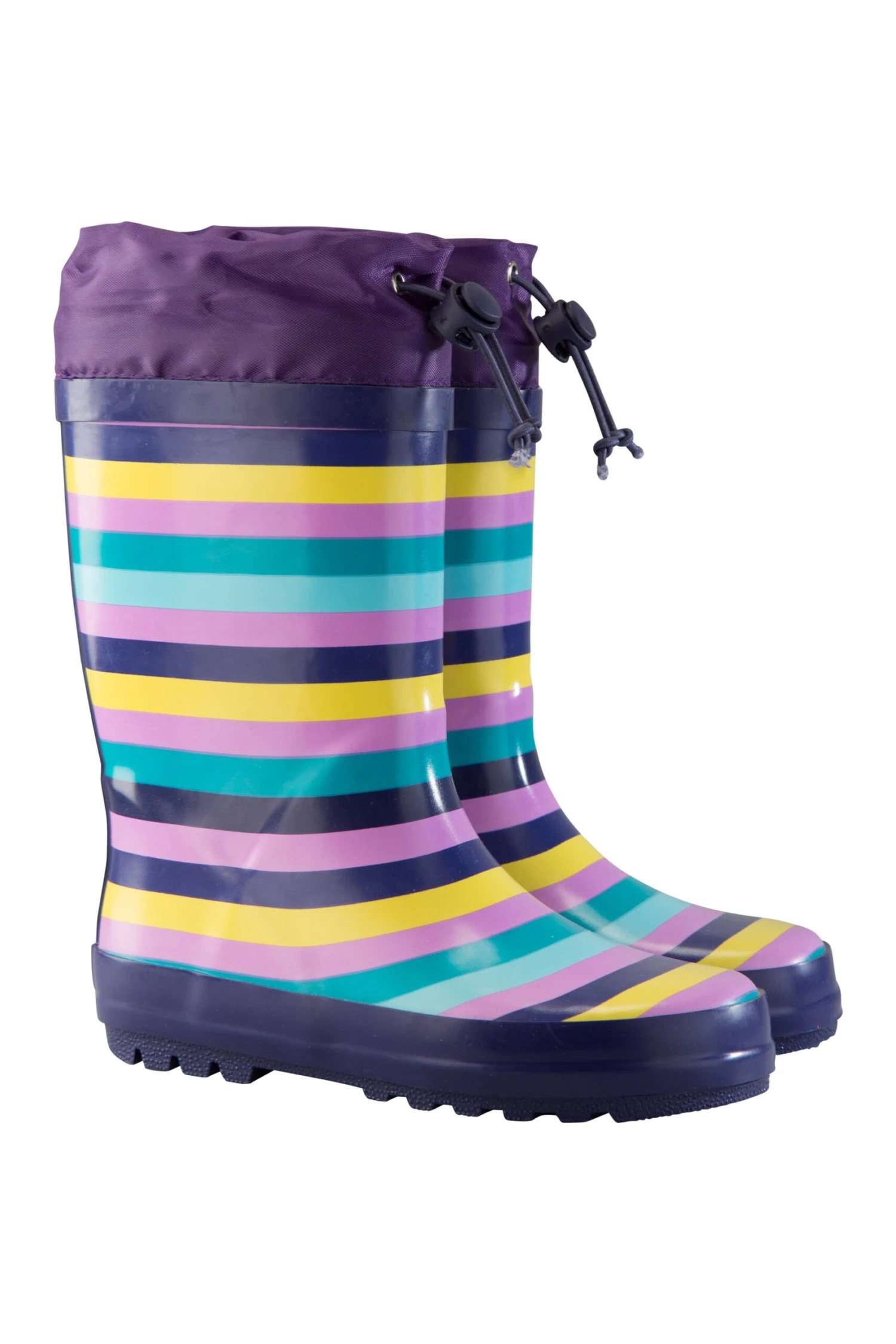 The Sunny Rubber Wellies will keep your little one’s feet dry in wet weather. Designed with a durable rubber upper and outsole, soft lining and EVA insole – the ideal footwear for outdoor adventures. Dimensions (approx) Width: 22 cm to 39 cm, height: 18 cm to 19.5 cm.