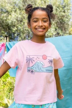 Our Wave Kids Boxy Jean Grazer Organic T-Shirt is made of 100% organic cotton fabric with a quality graphic design. It is lightweight with a casual boxy design, making it ideal for everyday wear.