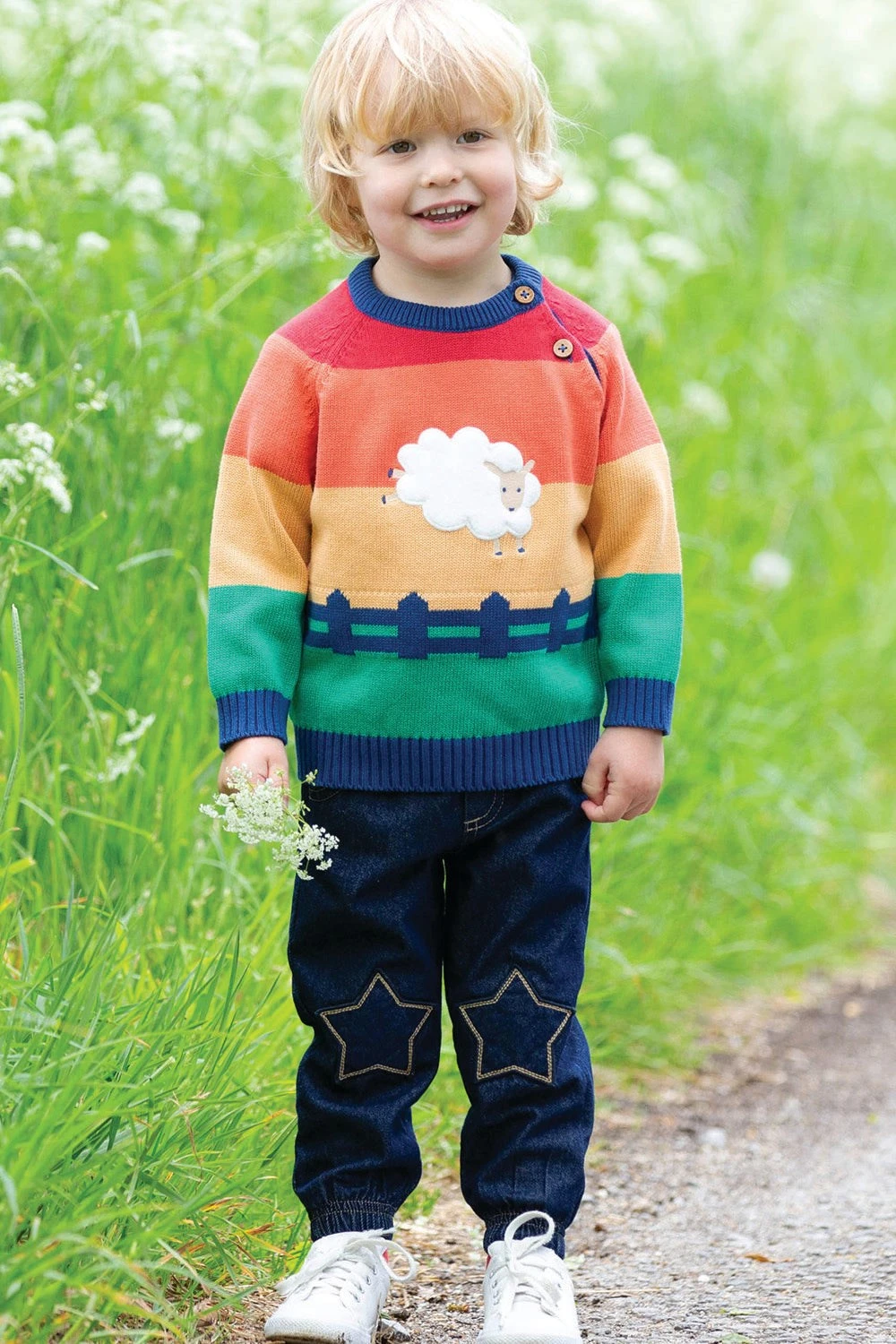 These joggers are the star of the show in more ways than one. Made in a popular organic denim fabric with side pockets, star-shaped knee patches and self-fabric elasticated waistband and cuffs, they’re crafted with many quality features. To give these joggers a soft and lived-in look, they have been washed in natural enzymes that come from apples. Pair with any bright and fun t-shirt for a comfy, colourful and stylish Kite look.
